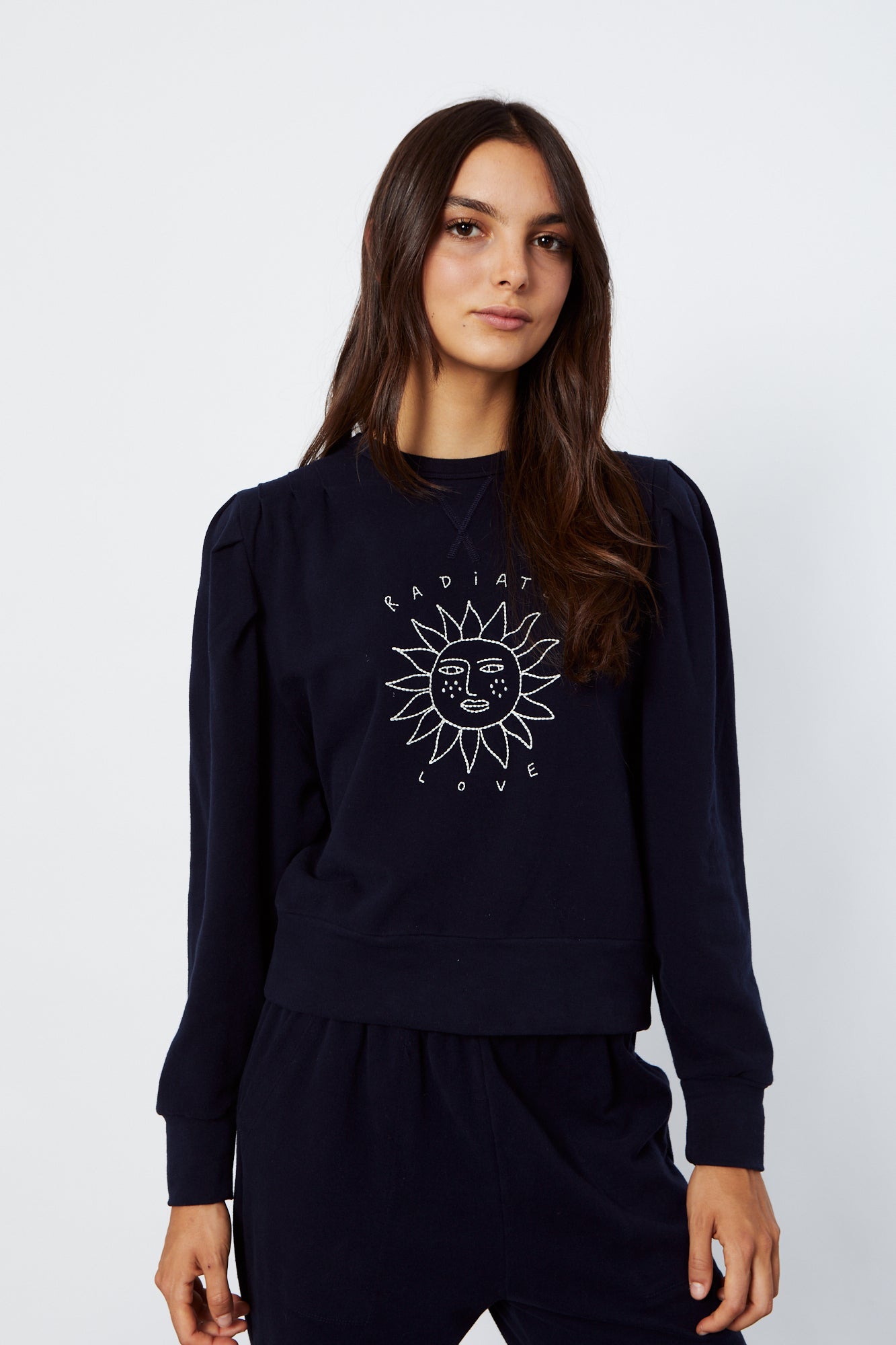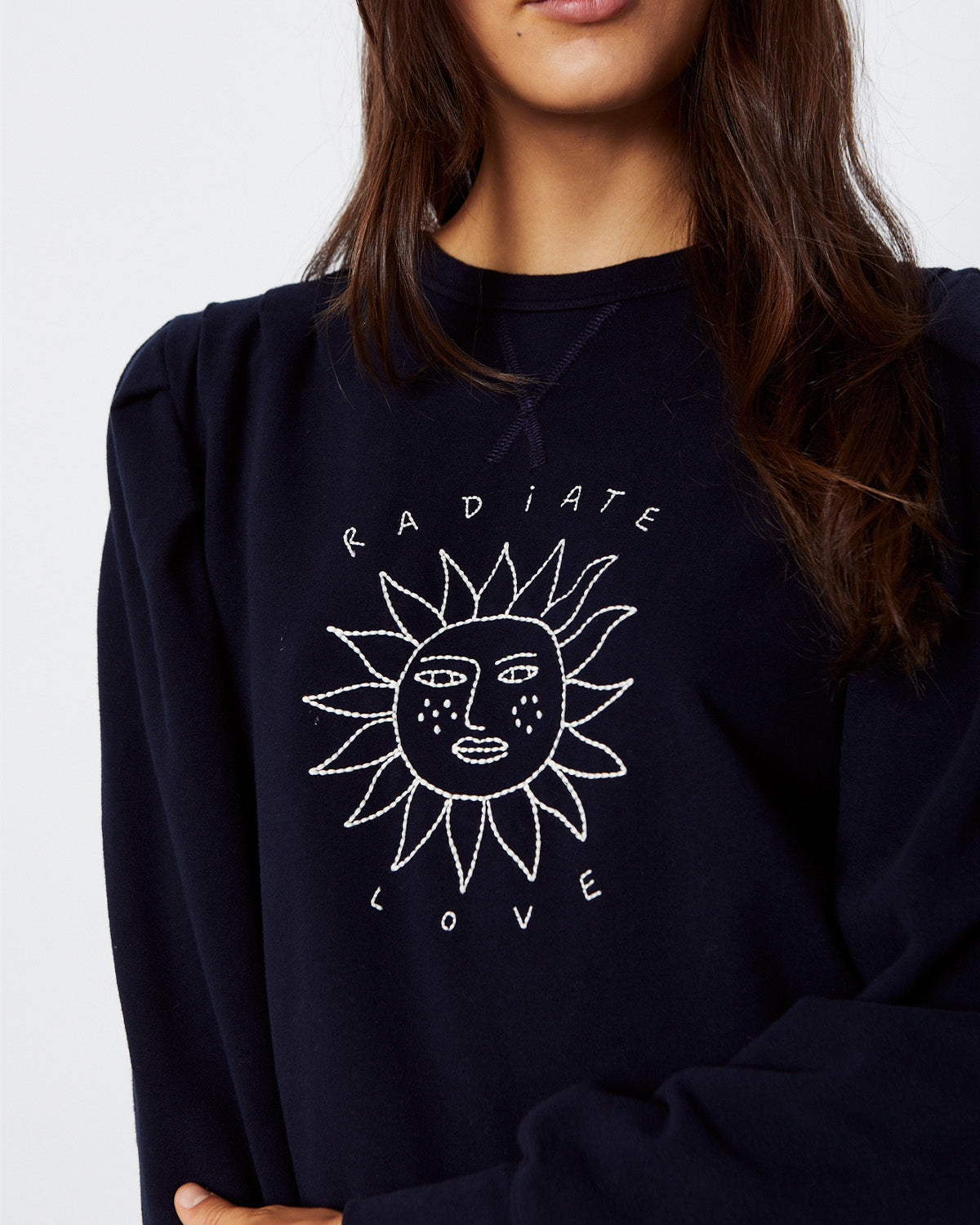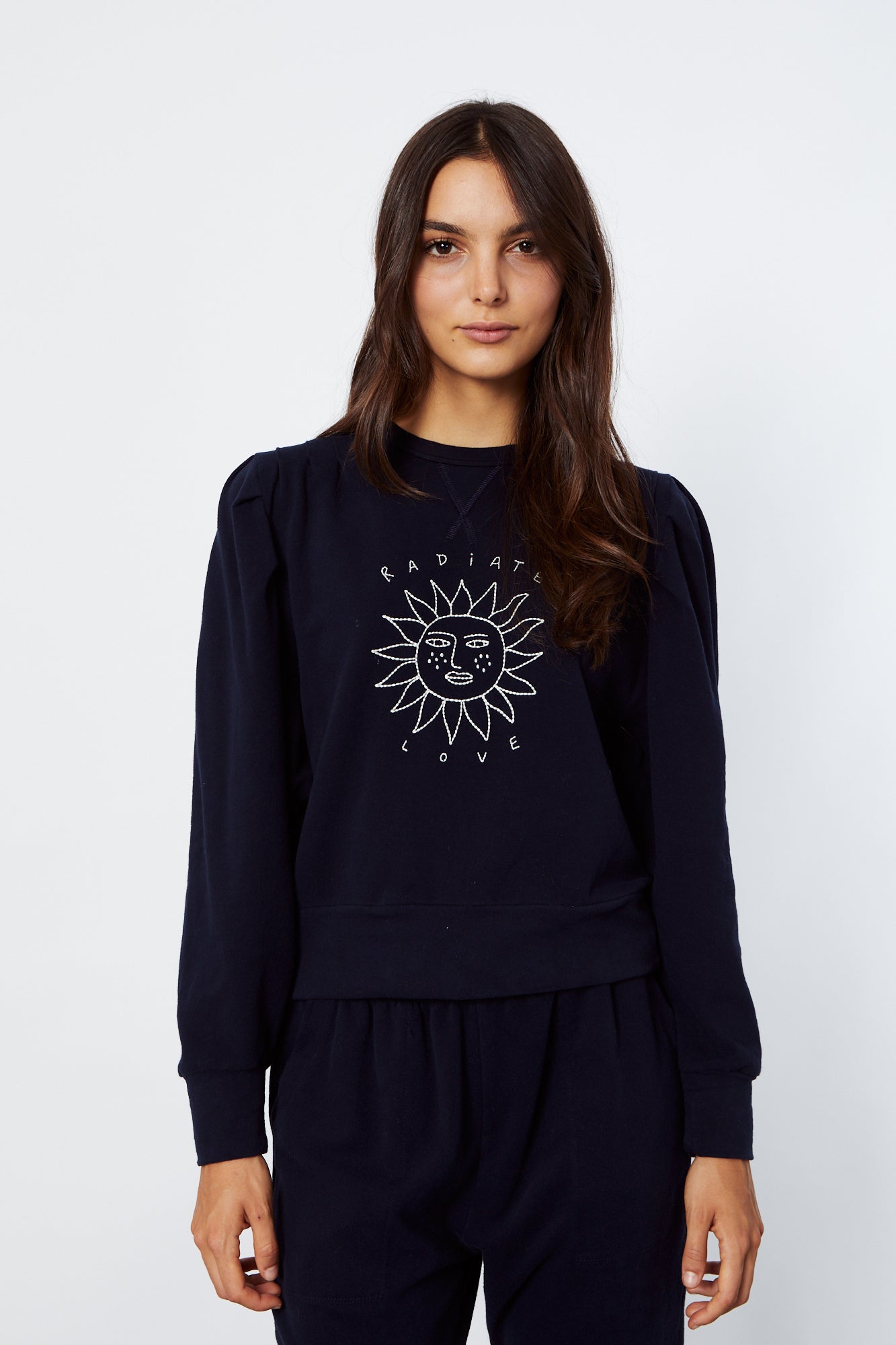 BUZO REALIZADO EN RUSTICO, CON FRUNCES EN COPA DE MANGA. POSEE BORDADO