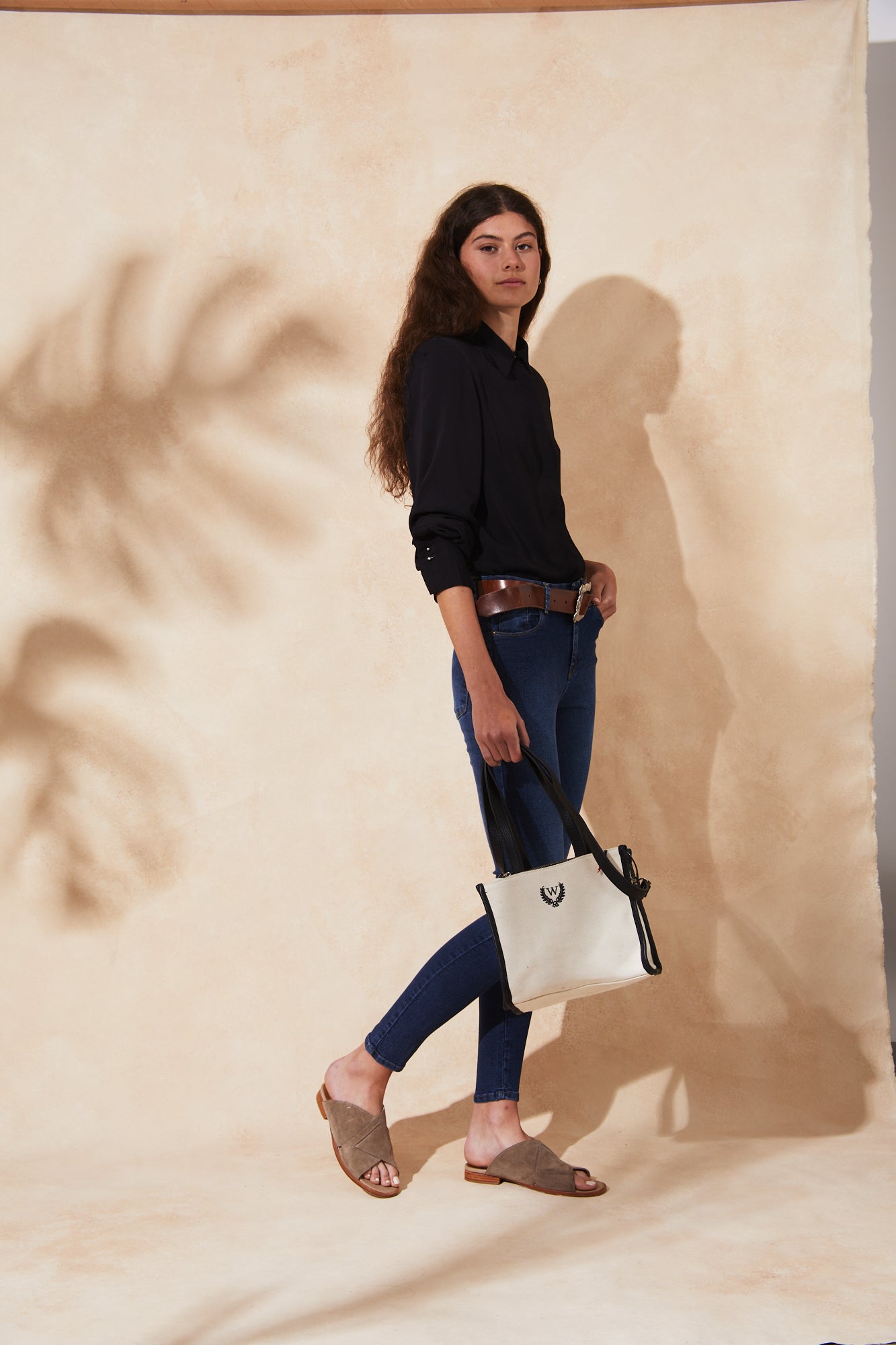 CAMISA CONFECCIONADA EN RAYON CON CARTERA ESCONDIDA, CON HOMBRERAS PUÑOS ANCHOS CON BOTONES METALICOS