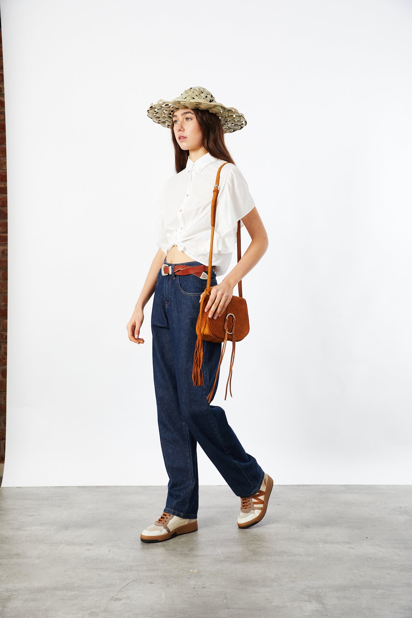CAMISA DE MANGA CORTA CON DETALLE DE VOLADOS EN LAS MANGAS QUE APORTAN MOVIMIENTO Y ESTILO AL DISEÑO. CUENTA CON CUELLO CAMISERO CLÁSICO Y ABROCHADURA FRONTAL MEDIANTE BOTONES AL TONO. ESTA PRENDA SE DESTACA POR SU CAÍDA FLUIDA Y CORTE RECTO, SIENDO IDEAL PARA COMBINAR EN LOOKS TANTO FORMALES COMO CASUALES. UNA OPCIÓN VERSÁTIL QUE ELEVA CUALQUIER OUTFIT CON UN TOQUE FEMENINO Y SOFISTICADO.