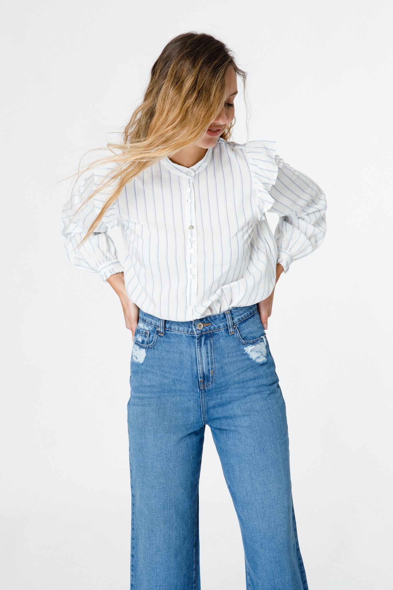 ETERNALLY RAYAS FINAS EN TONOS NEUTROS CON BOTONES PEQUEÑOS Y CAÍDA LIVIANA, UN CLÁSICO RENOVADO DE ESPÍRITU NATURAL