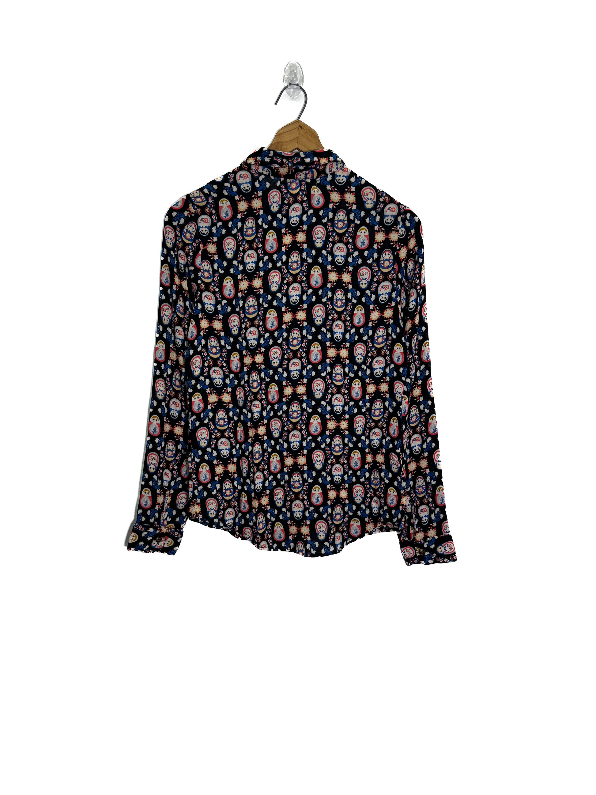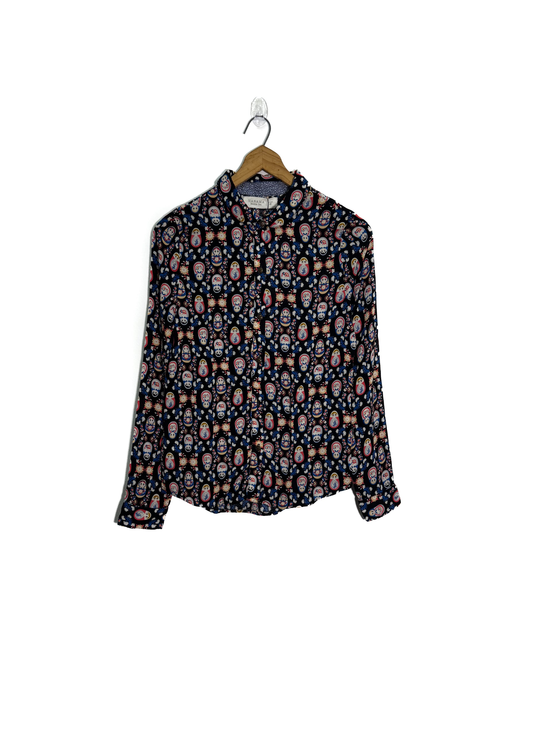 CAMISA DE FONDO NEGRO CON ESTAMPA DE MUÑECAS RUSAS. LÚDICO, DIVERTIDO Y MUY ÚNICO.