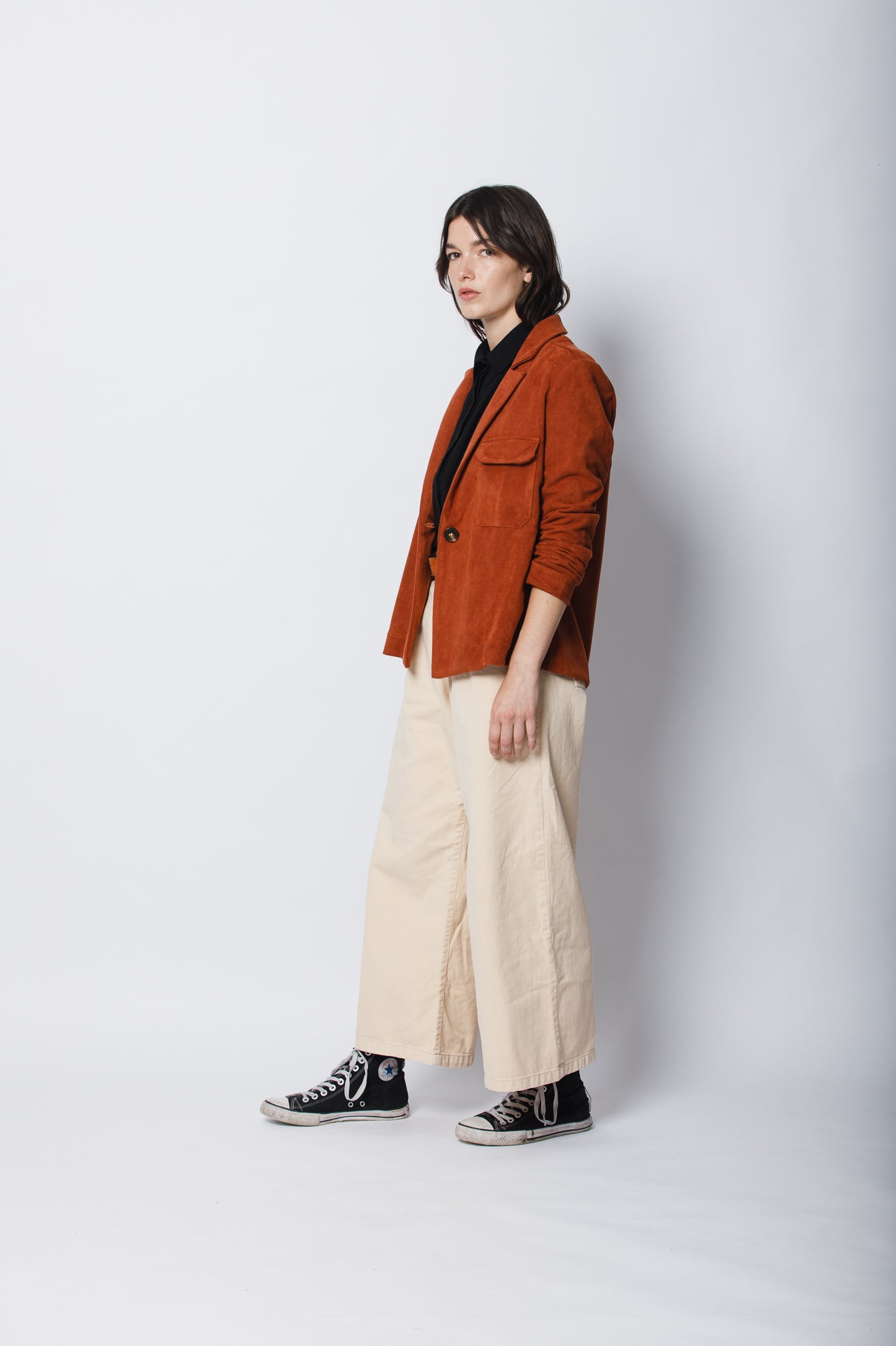 CAMPERA DE DISEÑO VERSÁTIL, IDEAL PARA COMPLETAR CUALQUIER LOOK. PRESENTA UN CORTE SASTRERO CON CUELLO Y SOLAPA, Y UN CIERRE FRONTAL DE UN BOTÓN. INCLUYE BOLSILLOS FRONTALES TIPO PARCHE, AÑADIENDO FUNCIONALIDAD Y ESTILO. PERFECTA PARA UN TOQUE DISTINTIVO.