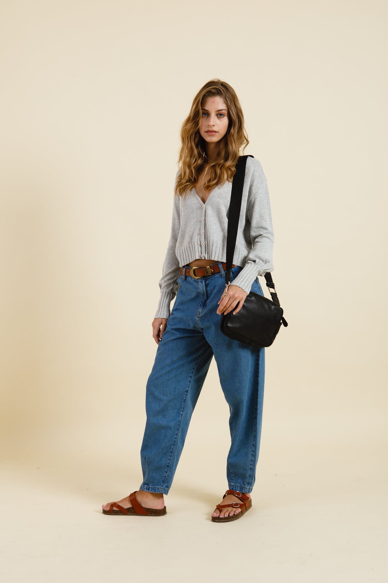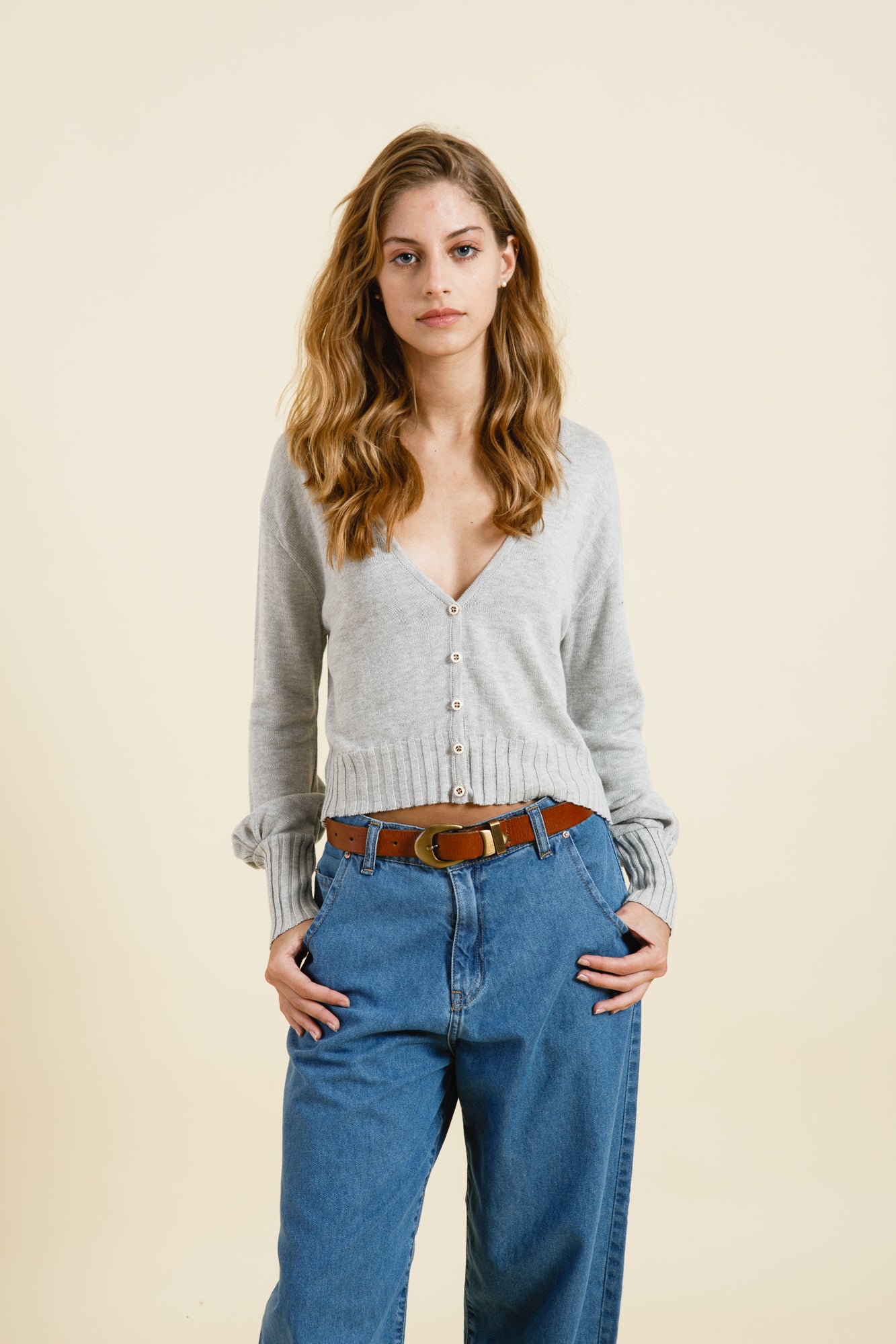 CARDIGAN COROT CON MANGAS BALLOON Y CUERPO ENTALLADO. ACCESO DELANTERO POR CARTERA A LA VISTA CON BOTONES.