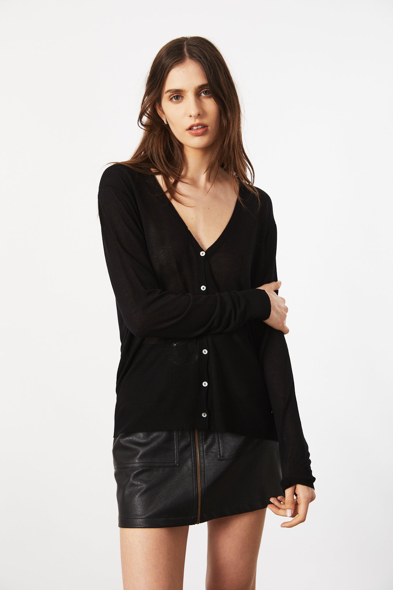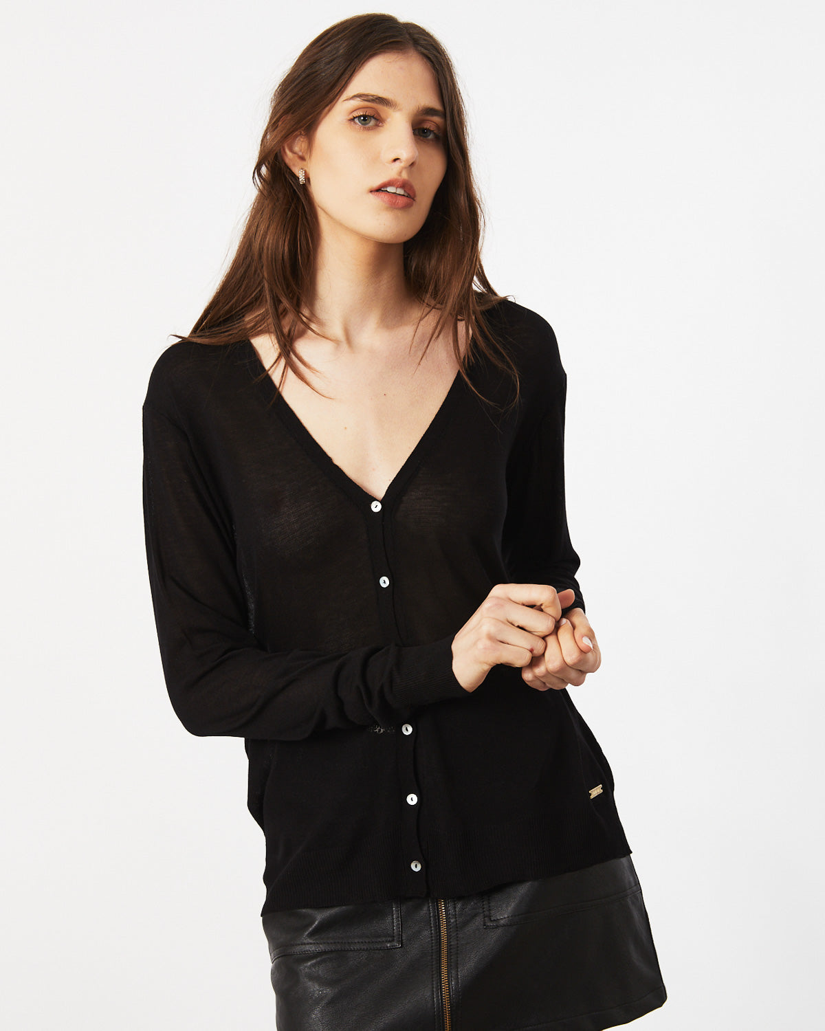 CARDIGAN CONFECCIONADO EN SUAVE HILADO DE VISCOSA. CON ESCOTE EN V Y BOTONES NACARADOS EN EL FRENTE.