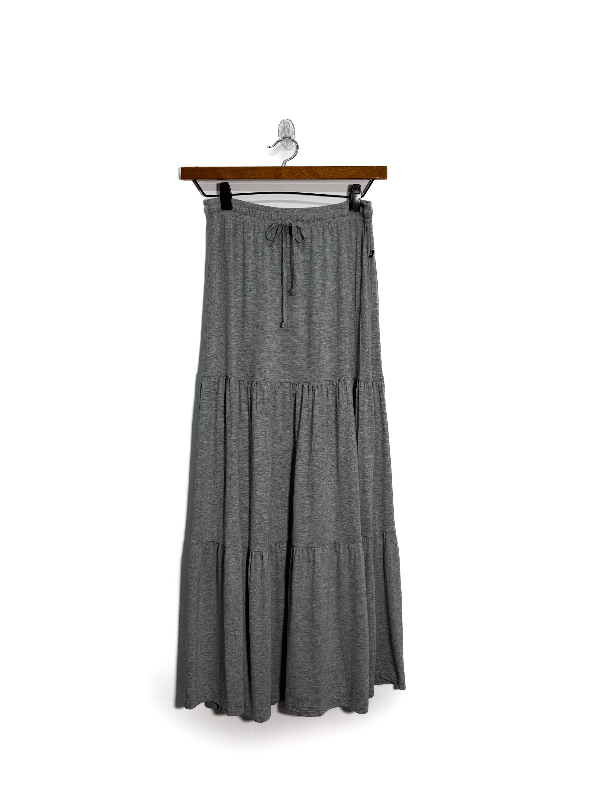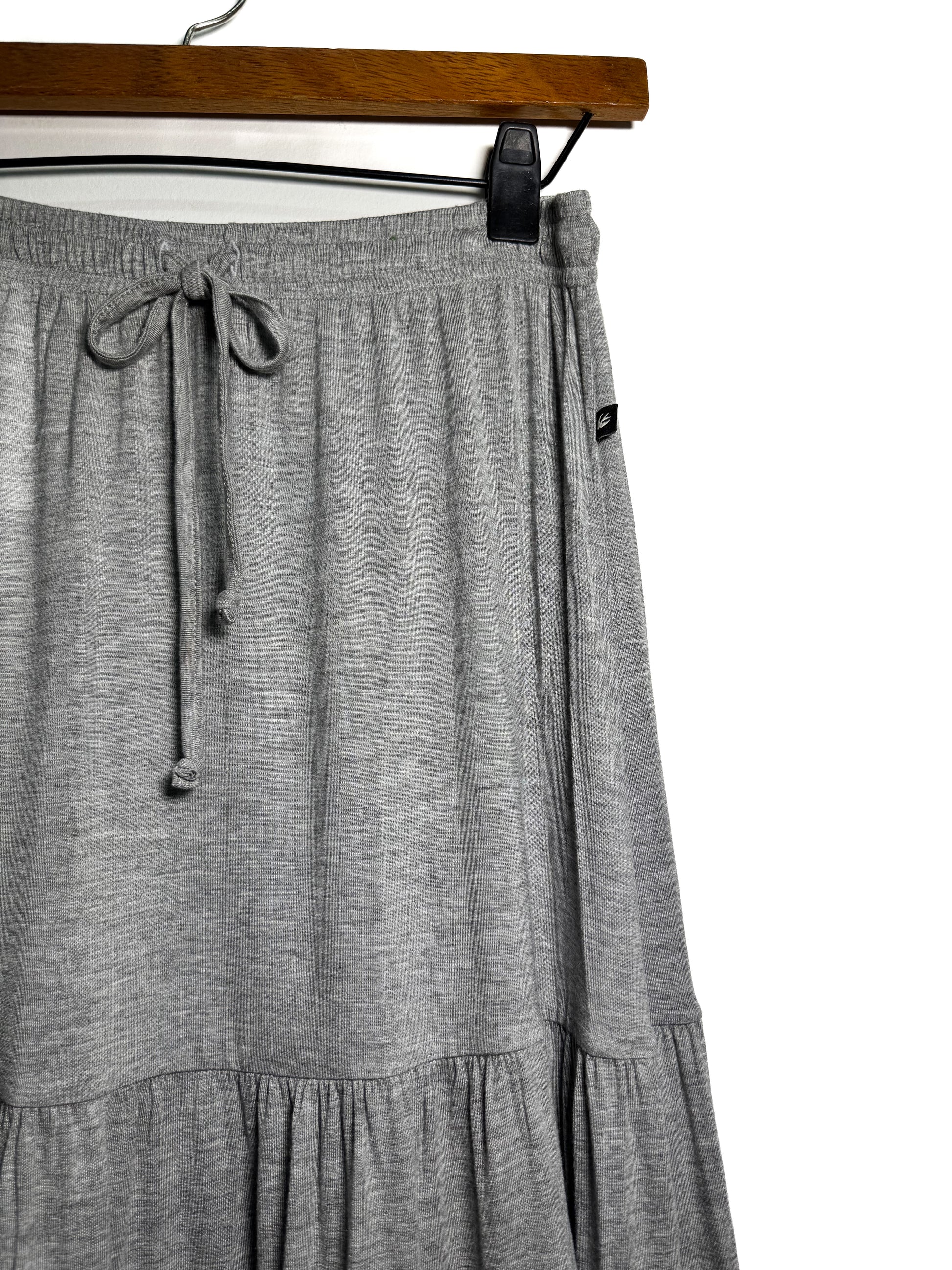 FALDA CONFECCIONADA EN ALGODÓN SUAVE, CINTURA CON LAZO AJUSTABLE Y CAÍDA EN CAPAS.