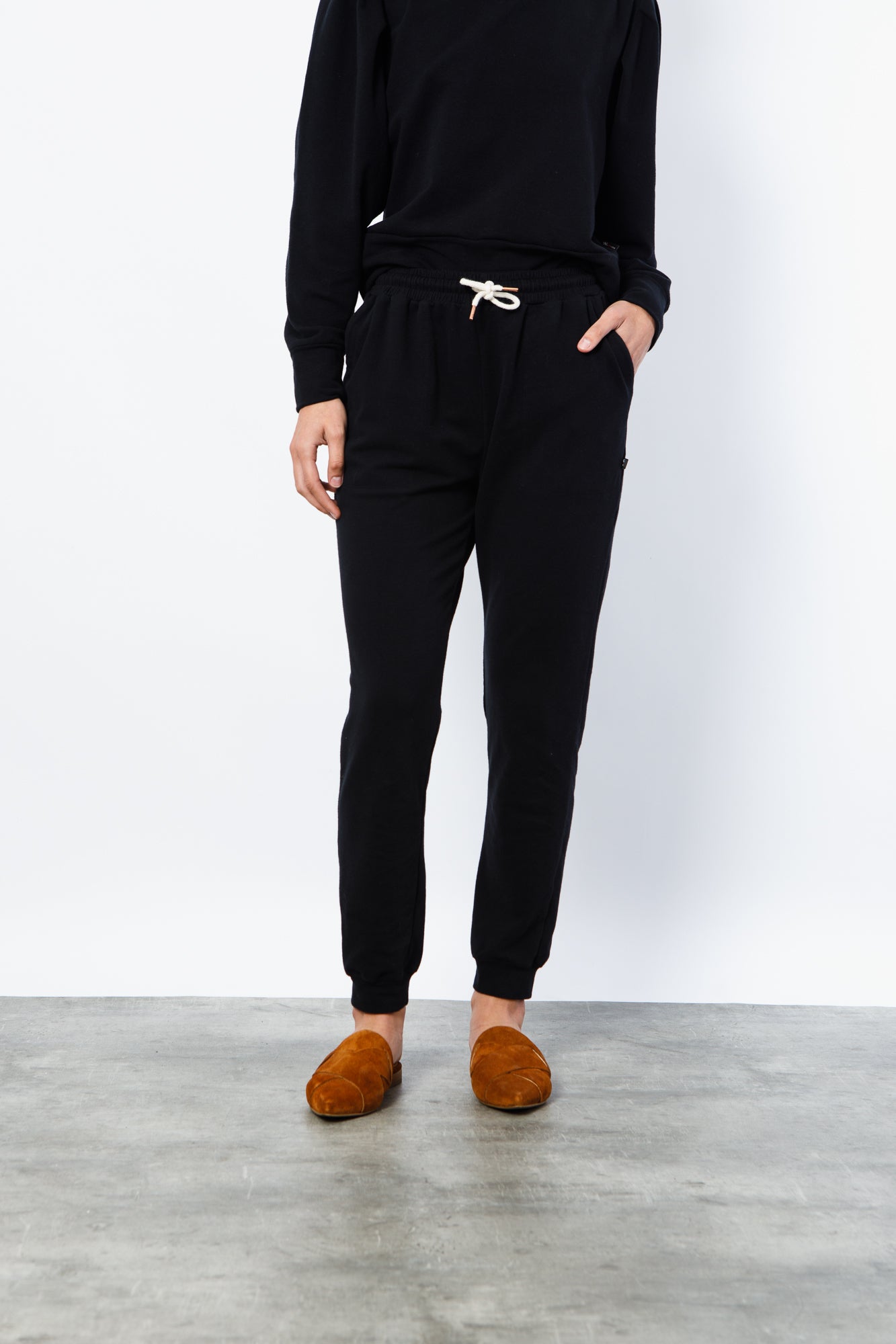 JOGGER CONFECCIONADO EN RUSTICO DE ALGODÓN, CON ELÁSTICO Y CORDÓN AJUSTABLE EN CINTURA, CON BOLSILLOS DELANTEROS.