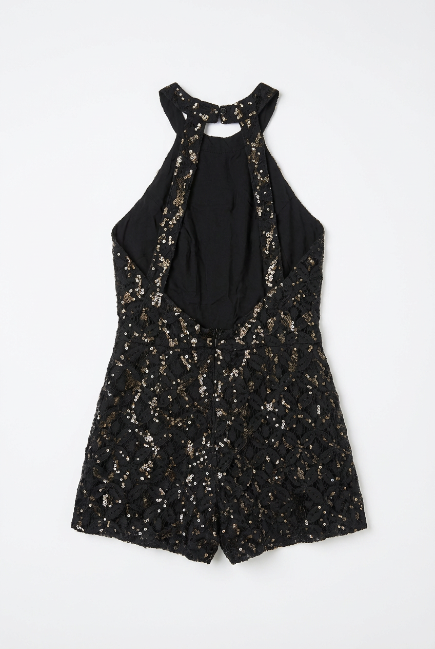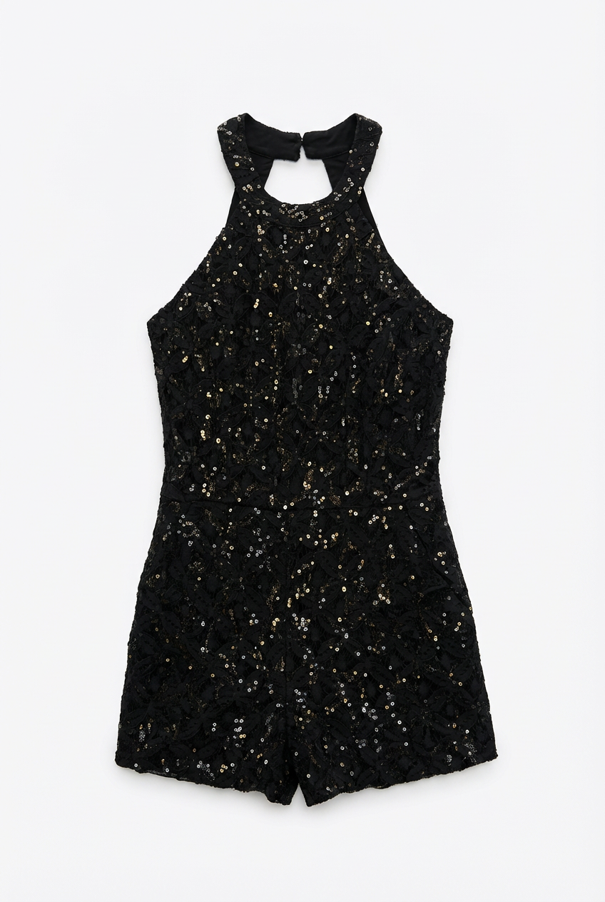 ESTE MONO SIENA ES UNA PIEZA DESLUMBRANTE QUE COMBINA ELEGANCIA Y BRILLO. SU DISEÑO CON CUELLO HALTER Y ESPALDA DESCUBIERTA CREA UNA SILUETA SOFISTICADA Y MODERNA. LOS DETALLES DE LENTEJUELAS SOBRE EL ENCAJE APORTAN UN TOQUE DE GLAMOUR IDEAL PARA EVENTOS NOCTURNOS O FIESTAS. UNA PRENDA COMPACTA Y CHIC QUE DESTACA POR SU TEXTURA Y SU CORTE ATREVIDO, ASEGURANDO QUE SEAS EL CENTRO DE ATENCIÓN EN CUALQUIER OCASIÓN ESPECIAL.