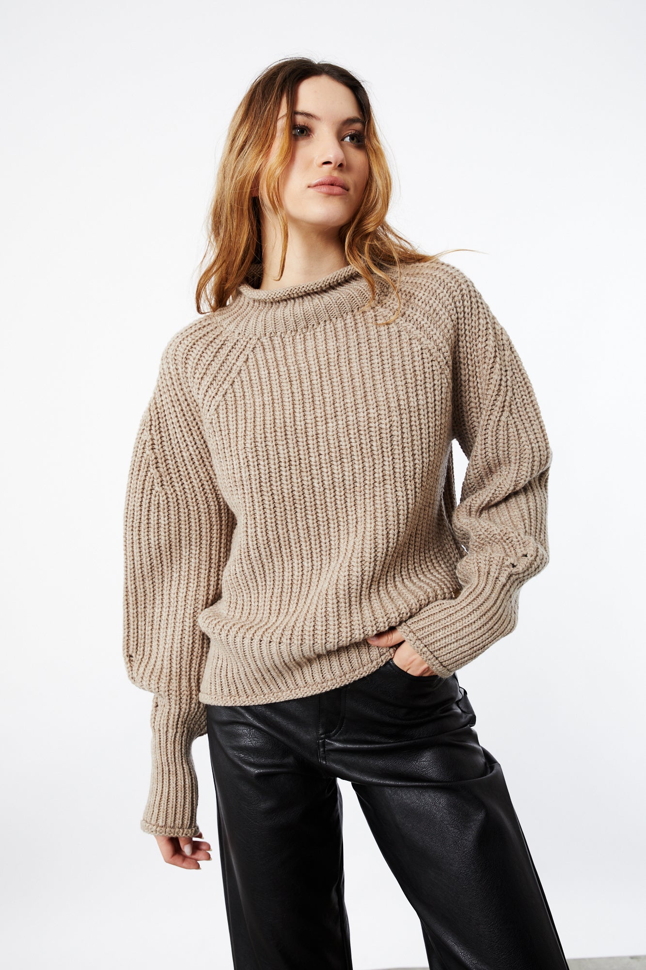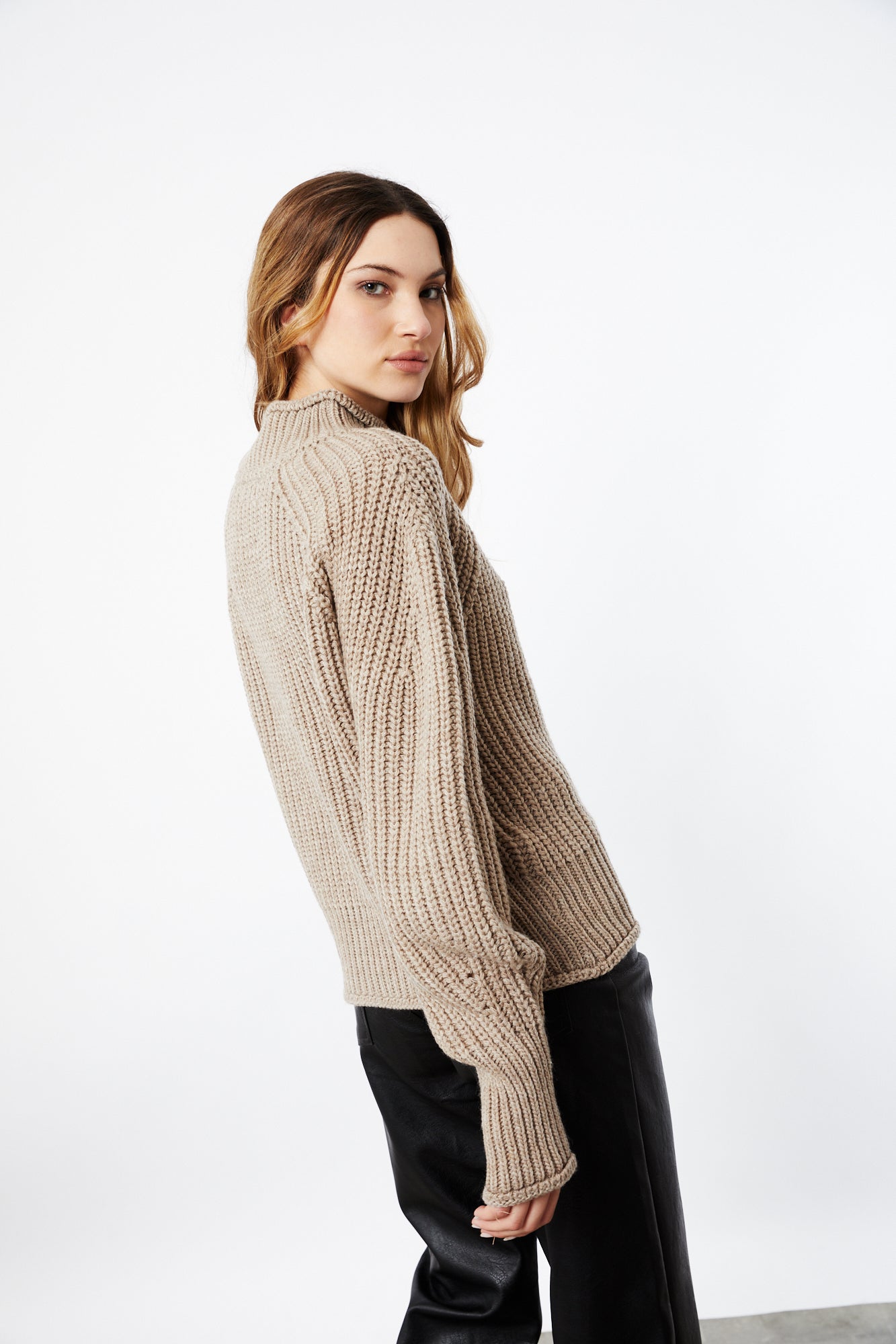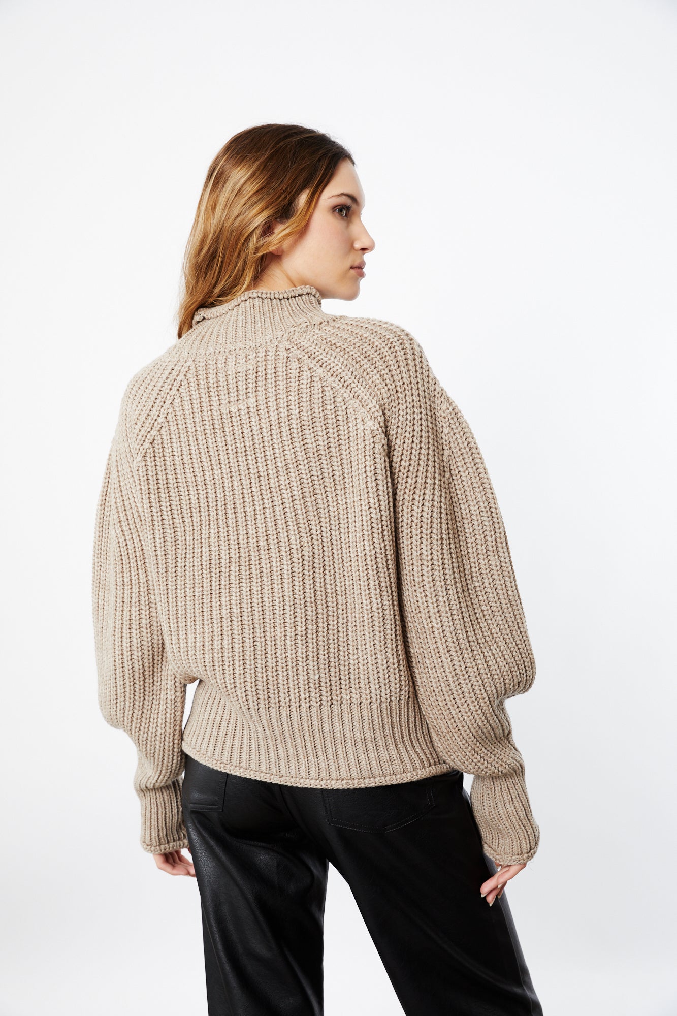 SWEATER POLERA, SUPER ABRIGADO. CALCE AJUSTADO EN CINTURA Y SUELTO EN CUERPO Y MANGAS, CON EFECTO "BALLOON".