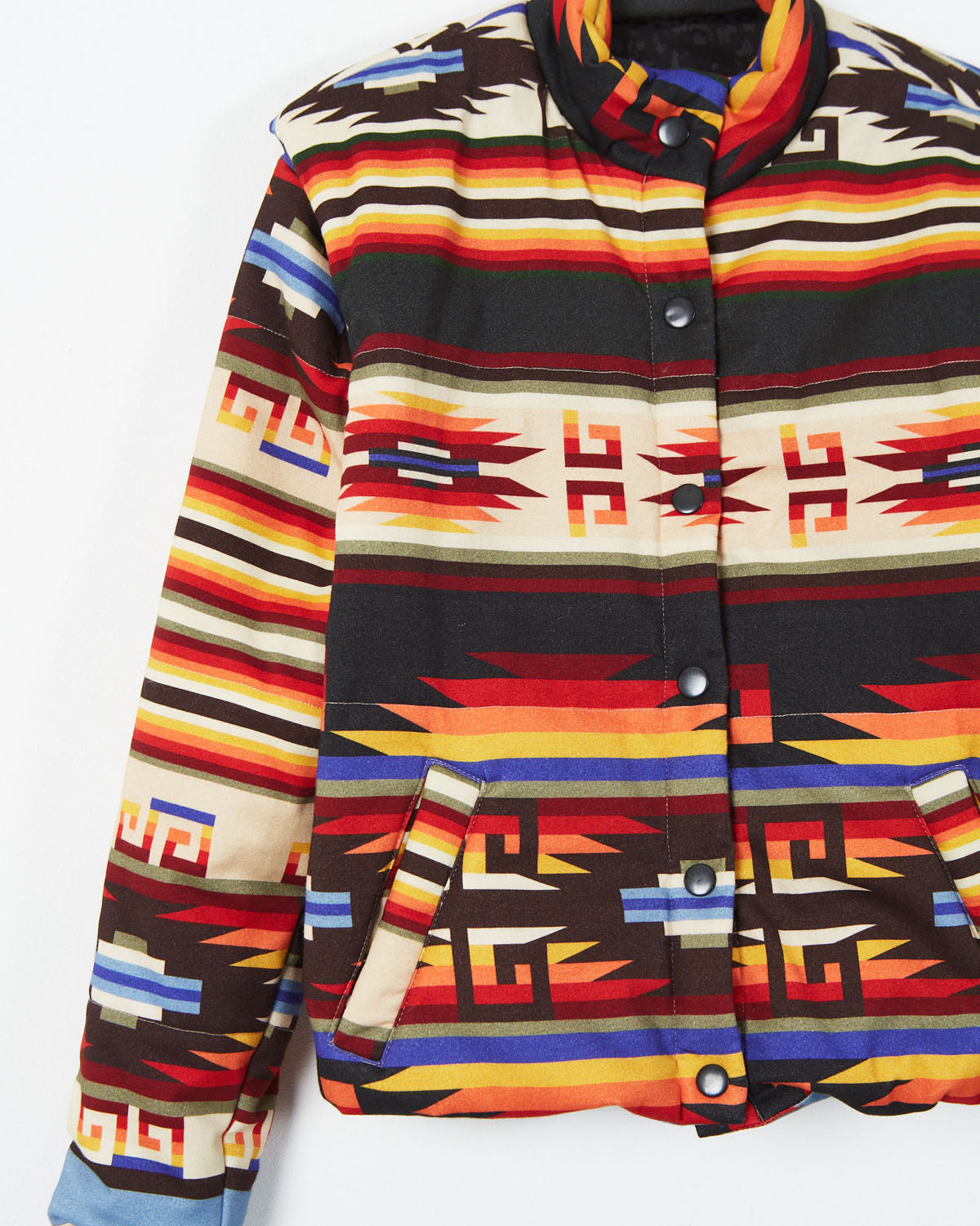 CAMPERA PUFFER ESTAMPADA, ACCESO CON SNAPS, CON BOLSILLOS LATERALES Y HOMBROS MARCADOS.
