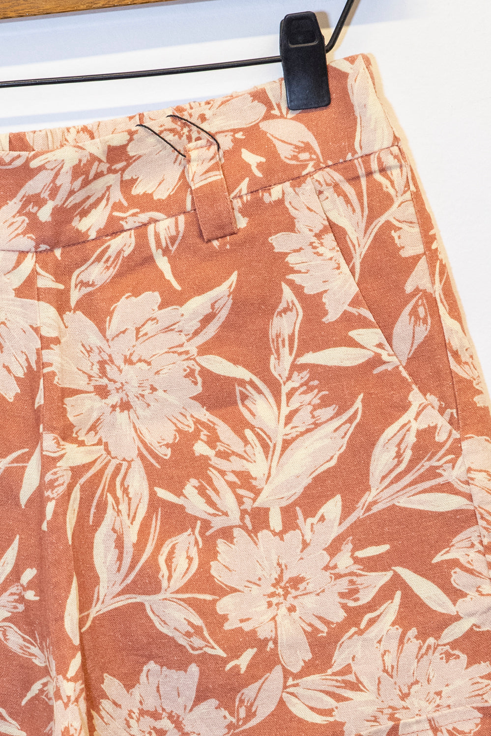 Short confeccionado en lino y rayon. Con estampado floral. Cuenta con bolsillos laterales y presillas para cinturón. Ideal para un look cómodo y fresco.