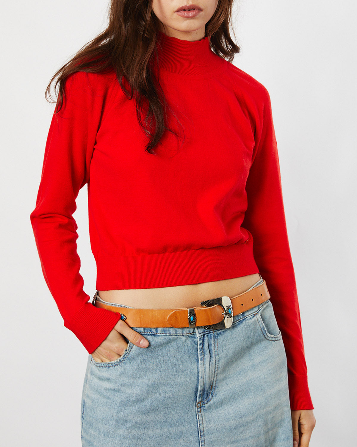 POLERA AJUSTADA CON CALCE AL CUERPO, LARGO A LA PRIMERA CADERA, HILADO SUAVE