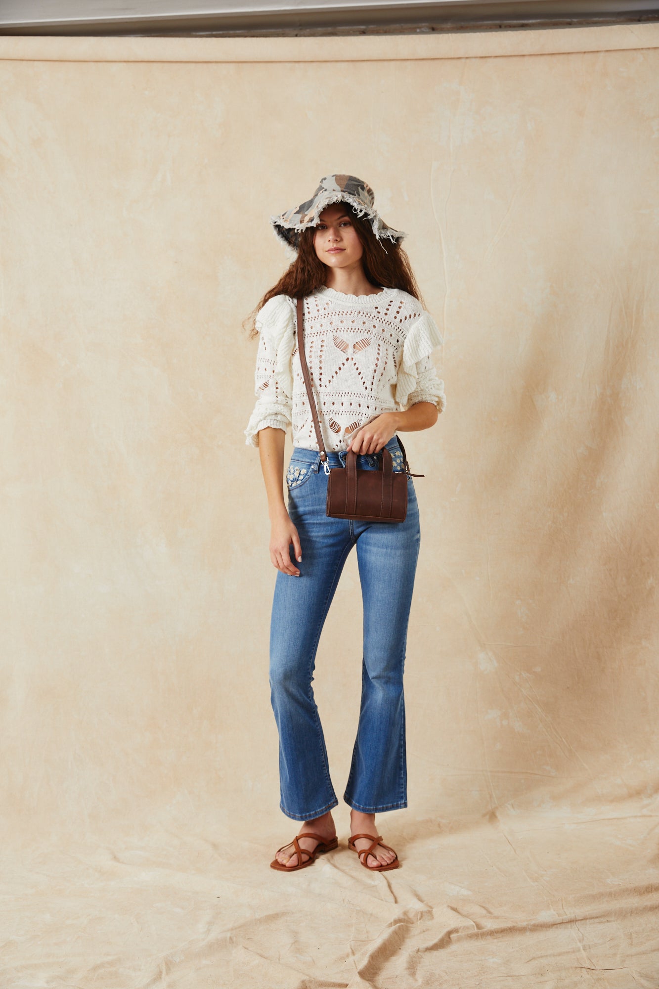 SWEATER CALADO, CON VOLADOS EN SISA , TEJIDO EN HILADO FLAME, 100% ALGODON.