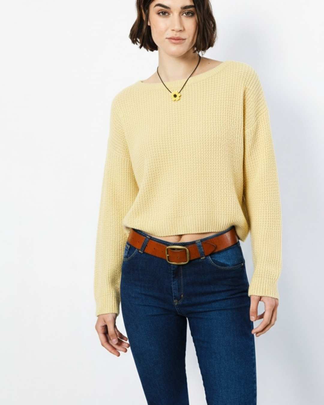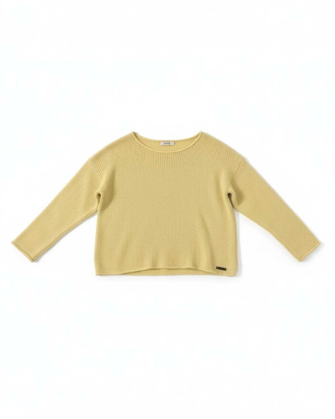 SWEATER AMARILLO SUAVE DE PUNTO LIVIANO CON CORTE RELAJADO Y ESPÍRITU LUMINOSO.