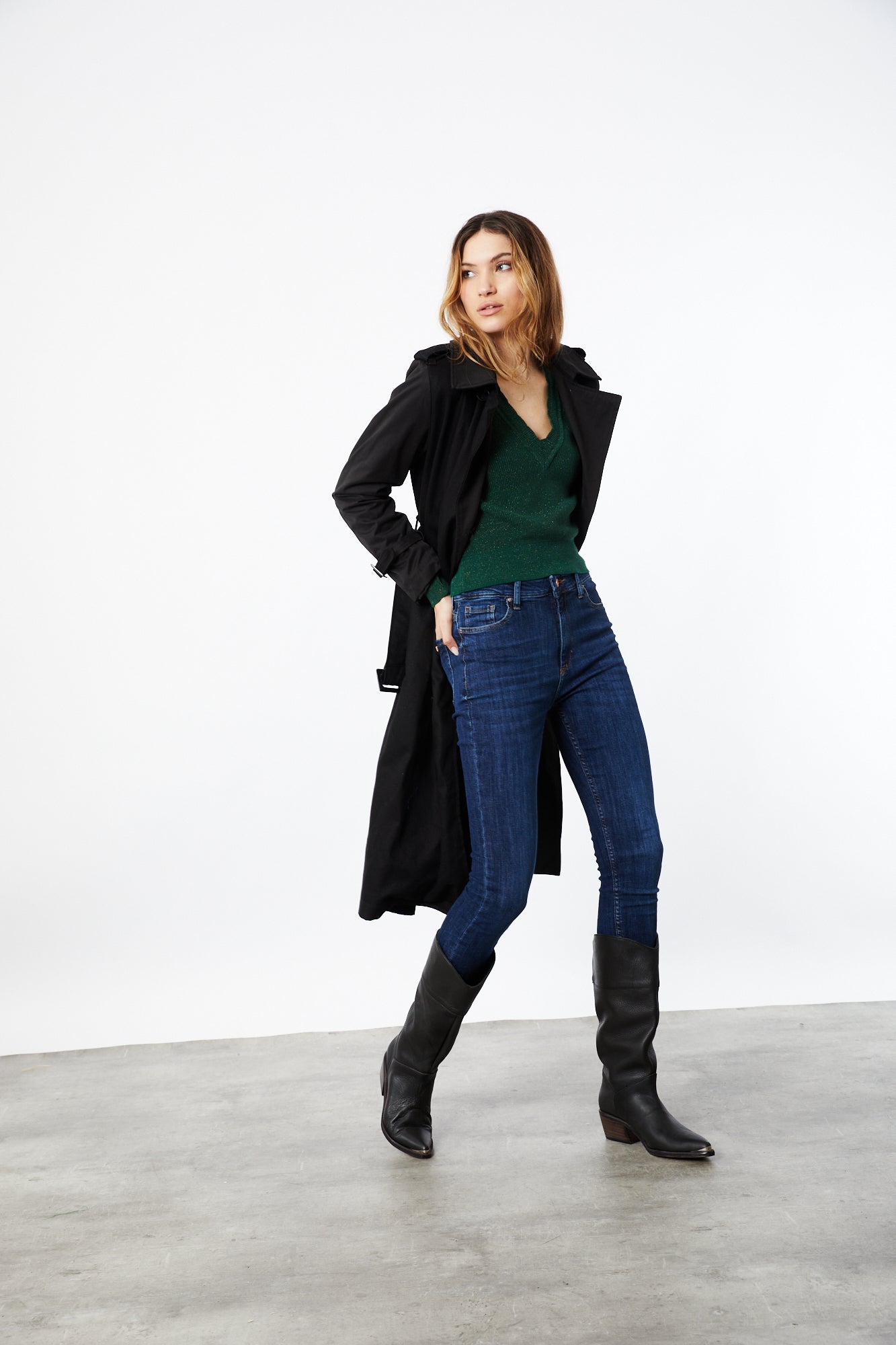 SWEATER CONFECCIONADO EN ALGODÓN CON LUREX. CALCE AL CUERPO, MANGAS LARGAS Y ESCOTE EN "V".
