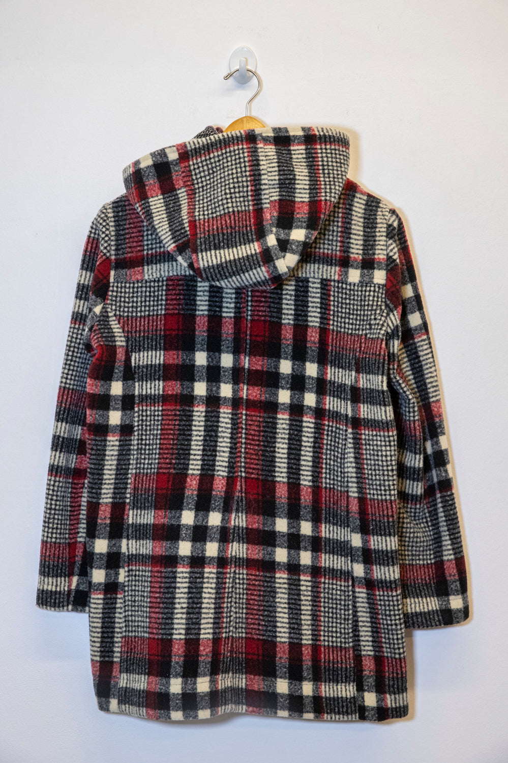 SACO CONFECCIONADO EN TELA A CUADROS. CALCE REGULAR, ACCESO DELANTERO CON TOGGLES. POSEE CAPUCHA Y BOLSILLOS FRONTALES. IDEAL PARA UN LOOK URBANO Y CANCHERO.