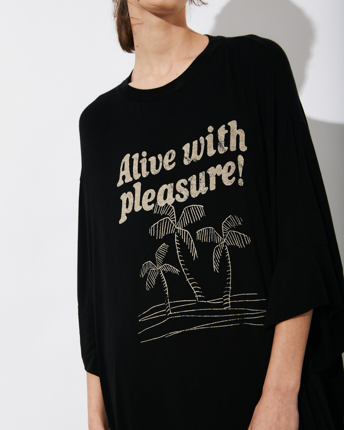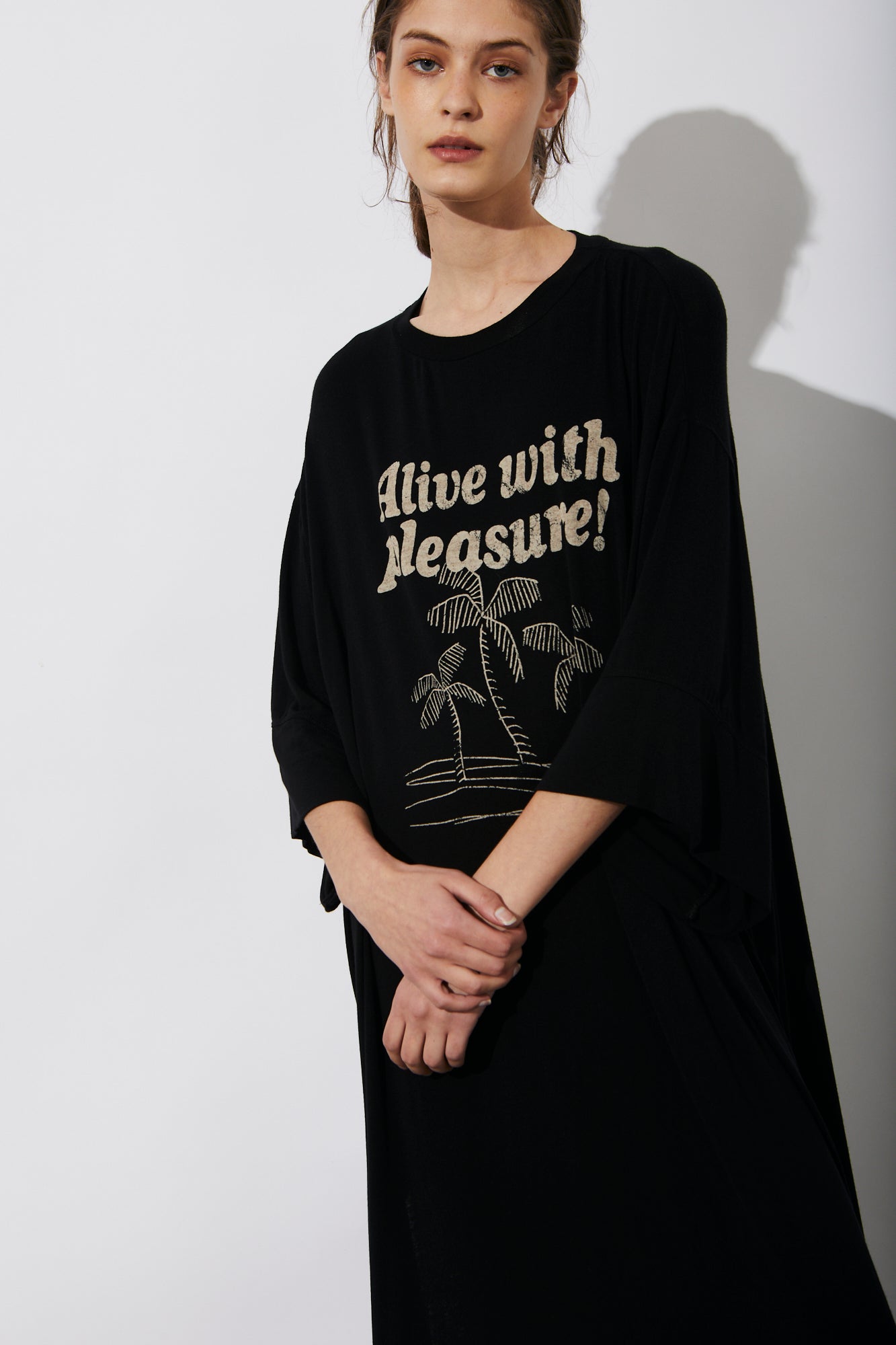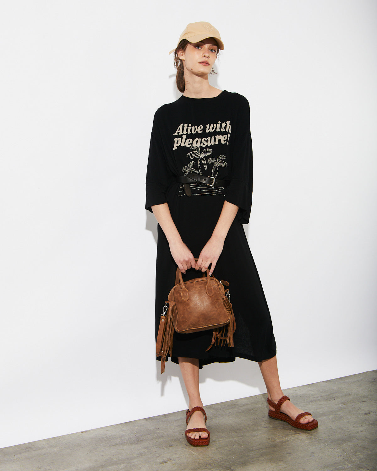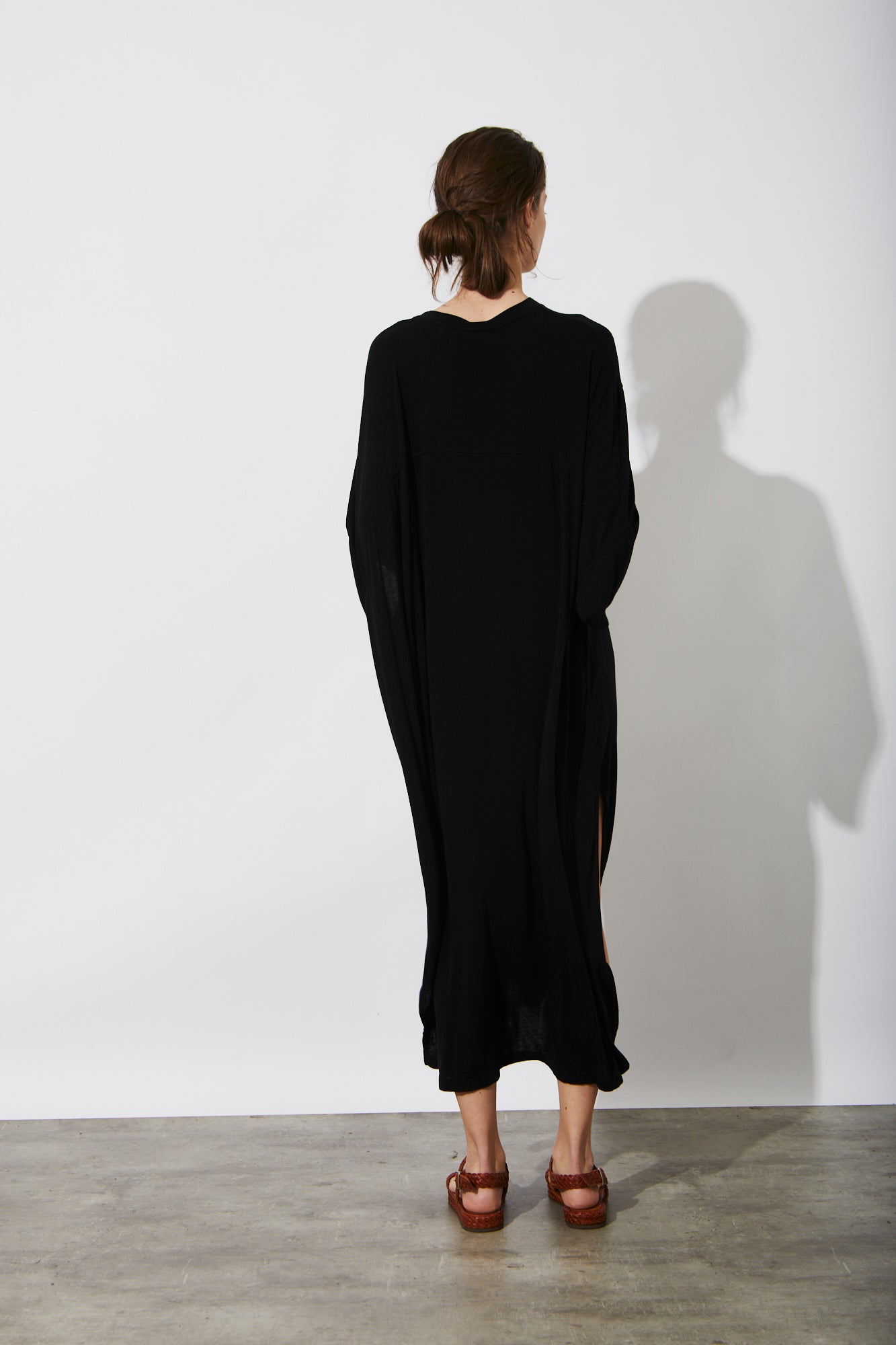 VESTIDO LARGO ESCOTE REDONDO CON TAJOS LATERALES.